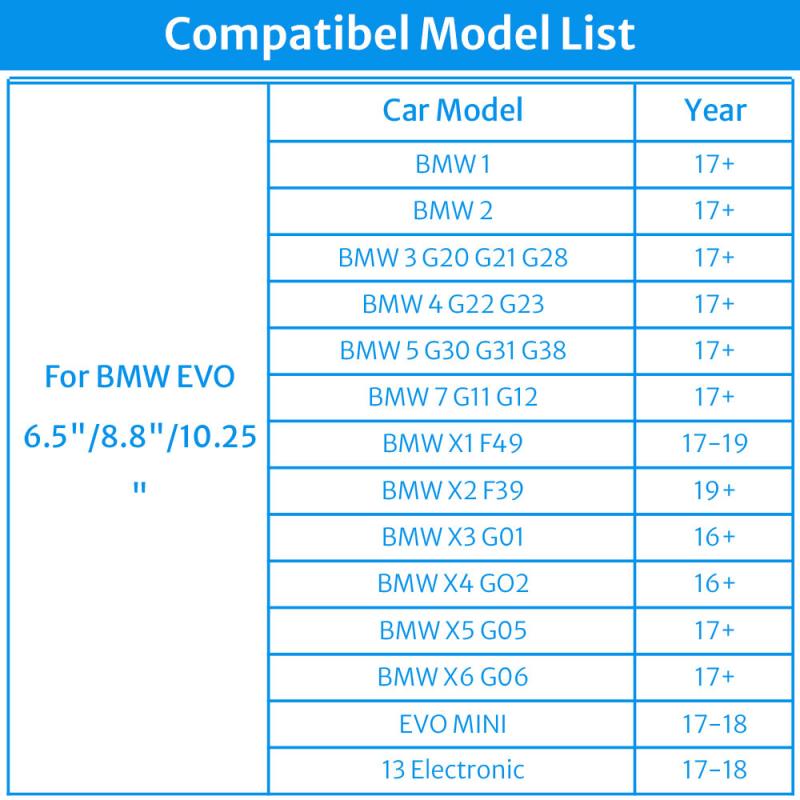 Este adaptador inalámbrico CarPlay funciona con Apple CarPlay y Android Auto, y la pantalla más grande de 6,5/8,8/10,25 pulgadas del sistema BMW EVO hace que sea más fácil de ver.